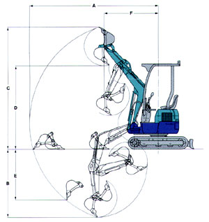 | F : Minimum front turning radius At right boom swing |