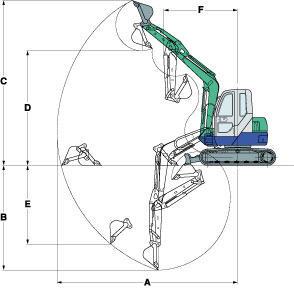 | F : Minimum front turning radius At right boom swing |